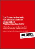 Eine der Kernfragen der Auseinandersetzungen um die Einführung von Sozialtickets ist die Frage der Finanzierung. Um die Kosten zu ermitteln, werden von Politik, Verwaltung und öffentlichen Unternehmen Studien in Auftrag geben. Von den Ergebnissen dieser Studien hängen unmittelbar politische und finanzielle Entscheidungen der Abgeordneten in den Stadtparlamenten ab. Diese von der Fraktion DIE LINKE. im Bundestag in Auftrag gegeben Arbeit überprüft kritisch diese Studien und gibt Argumentationshilfen für den Umgang mit ihnen. mehr...